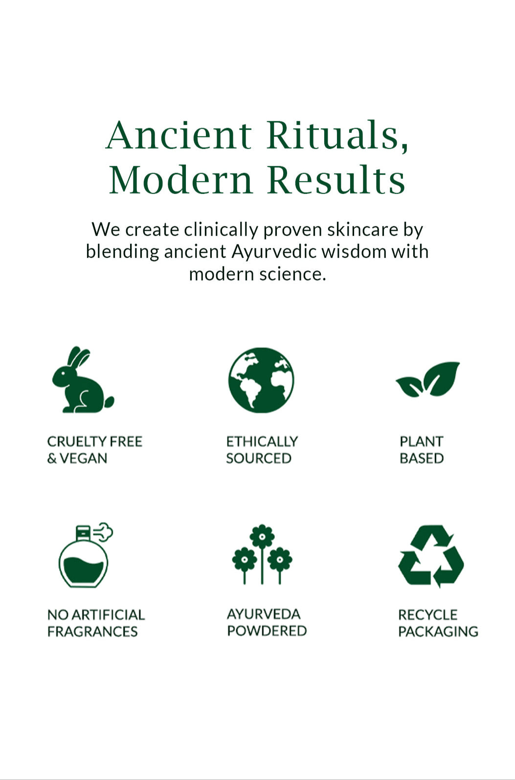 Every batch undergoes ancient Ayurvedic Phyto Infusion—an 18-day journey where we carefully draw out each plant’s essence, infusing every drop with unparalleled potency and energy. Then we enhance our Ayurvedic infusion with scientifically advanced ingredients, creating transformative skincare that balances nature’s vitality with clinically proven results for harmony, radiance, and renewal.